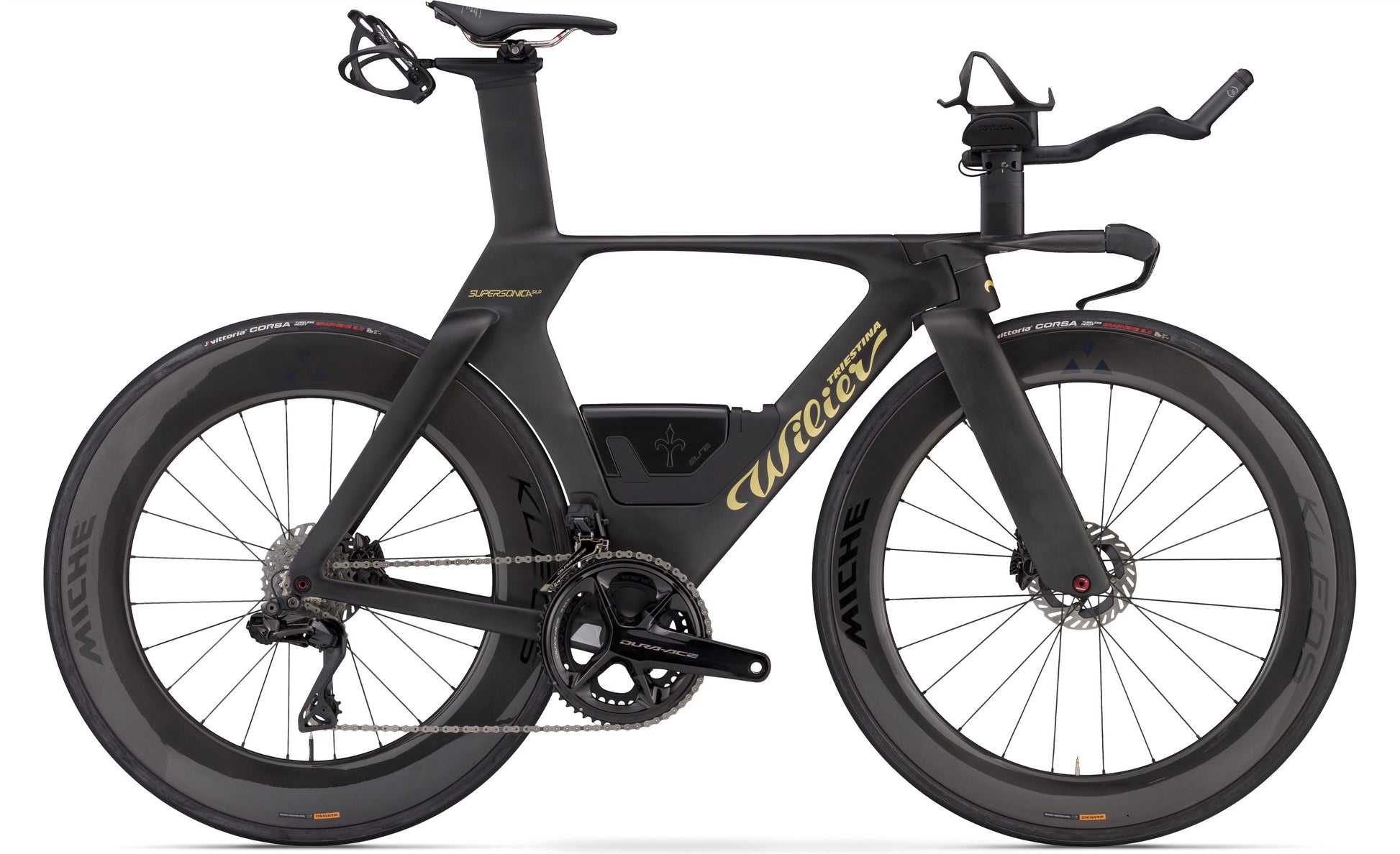 Supersonica SLR E655IT2 NOUVEAU - T17 Black, Gold - Matt SHIMANO DURA-ACE Di2 R9270 2x12S TRIATHLON MICHE KLEOS 67 (Front) / 85 (Rear)