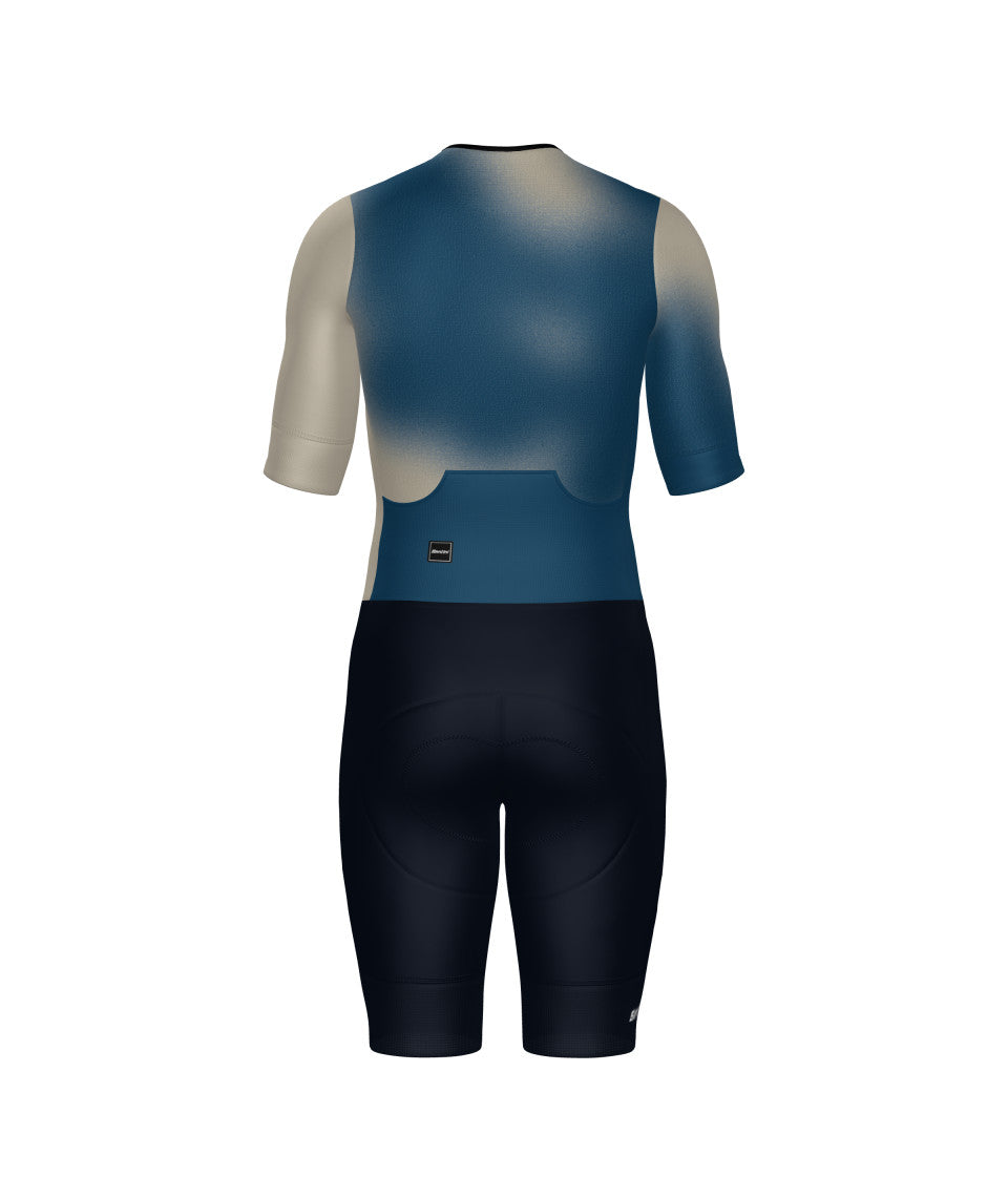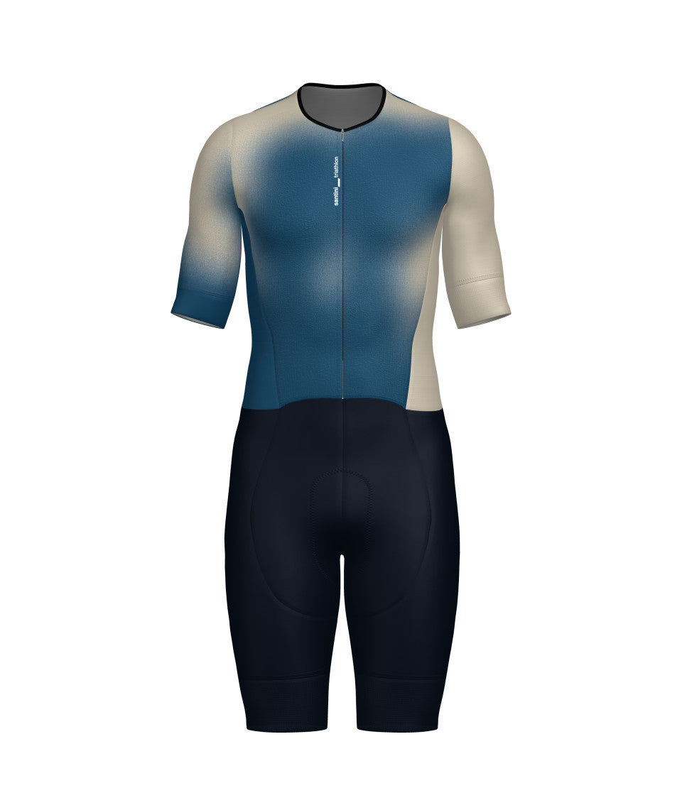 La combinaison de triathlon longue distance Leaf est ultra-légère et respirante, conçue pour offrir un confort optimal lors des courses par temps chaud. Le haut est confectionné dans un tissu ultra-léger à effet rafraîchissant, avec des manches en mesh respirant avec protection UPF 30 et des bandes élastiques perforées pour un maintien optimal et une respirabilité optimale.
