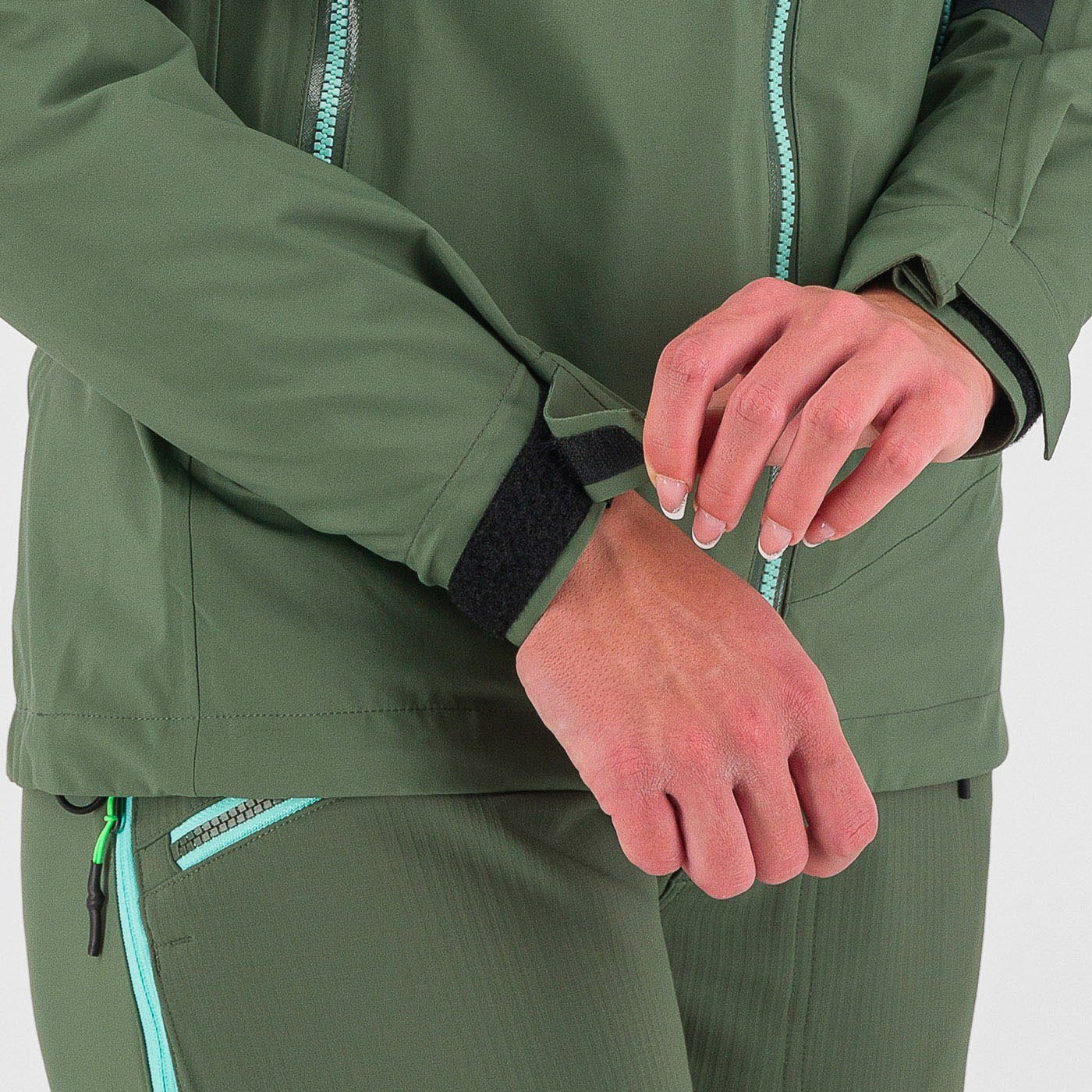 Entièrement étanche, elle est confectionnée dans un tissu imperméable avec une colonne d'eau de 20 000 mm et une respirabilité de 23 000 g/m²/24 h. En bref, une protection maximale contre l'extérieur et une respirabilité maximale, pour rester toujours au sec. Nous savons combien il est important d'évacuer l'humidité du corps, surtout en hiver.