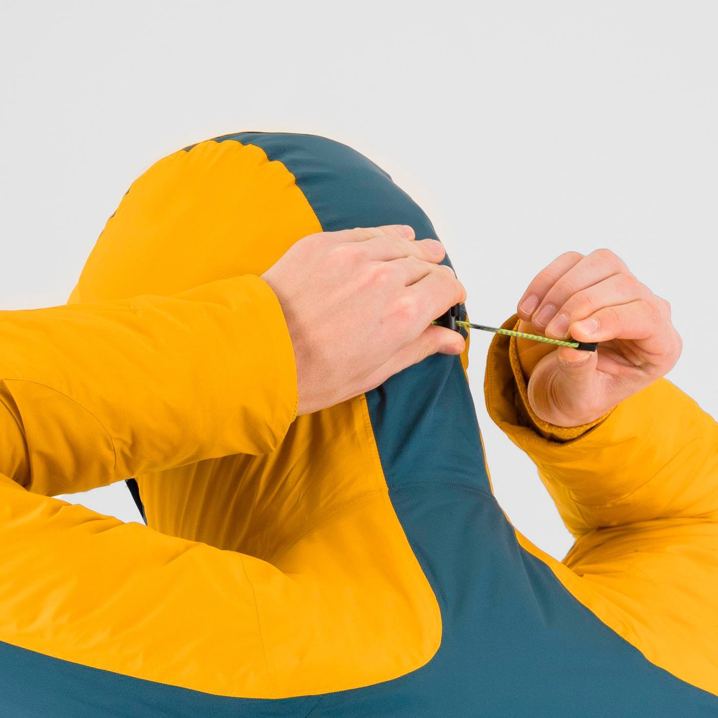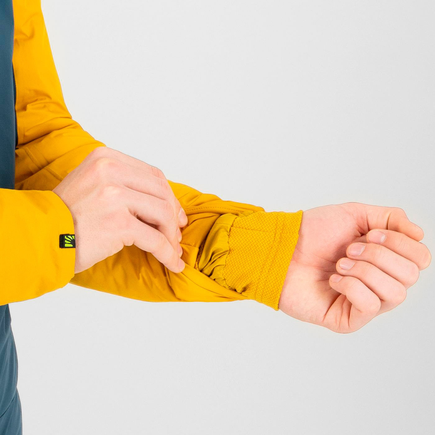 Cette veste est fabriquée avec une construction hybride ; le tissu K-Dry assure une imperméabilité équivalente à une colonne d'eau de 20 000 mm et une respirabilité de 70 000 g/m²/24 h, tandis que les empiècements en polaire thermique sur la capuche, les poignets, l'intérieur des manches et l'intérieur du dos offrent confort et chaleur. La chaleur est principalement assurée par l'isolation PrimaLoft® Silver Active : 100 grammes sur les manches et la capuche et 130 grammes sur le reste du vêtement.